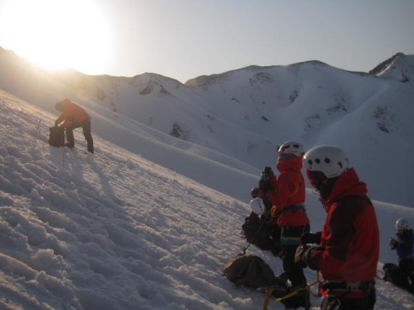 初日は設営と生活技術、二日目は雪山歩行技術およびアバランチギアの使い方を習いました。