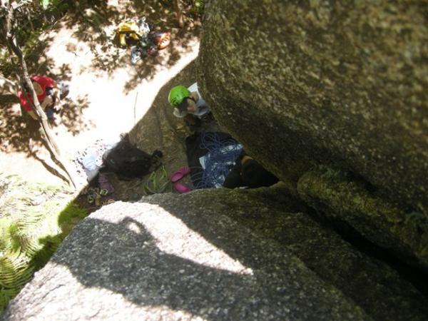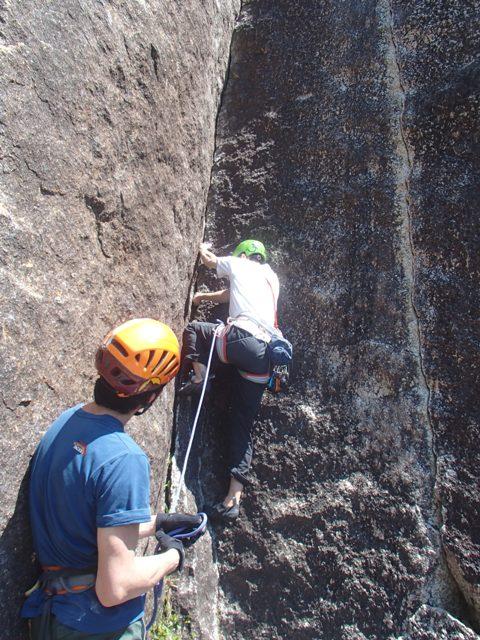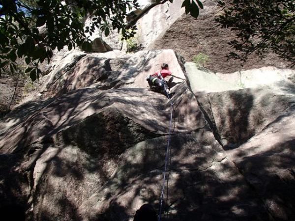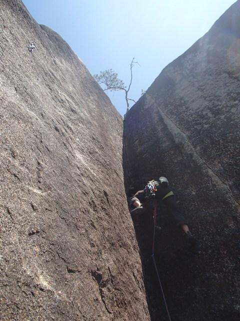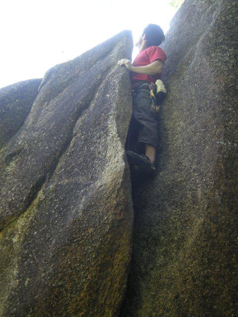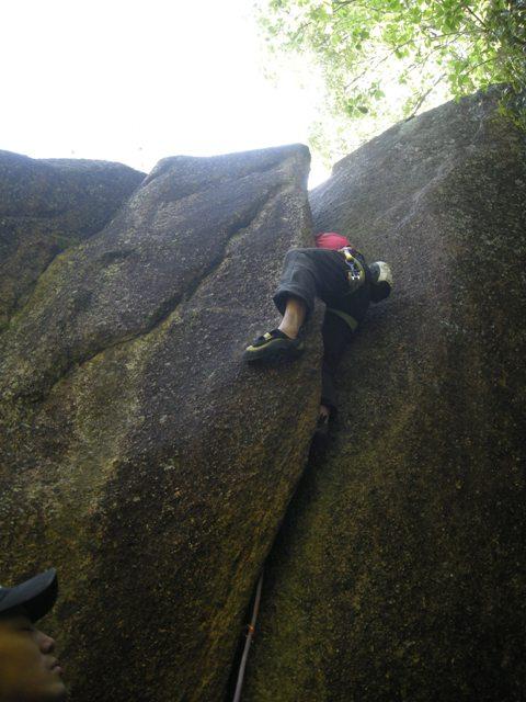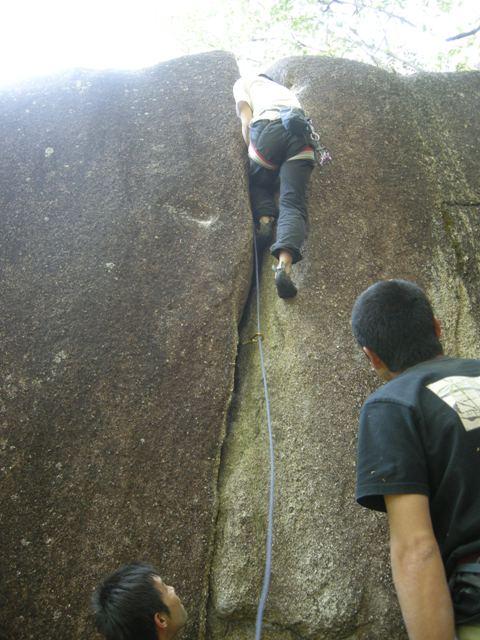 これを登ると『アダム 5.11b』が見えます。私はフォローで何回もテンションかけて登りました。越川さんはOS。ジャミングがヘタなことがモロに響きます。ごまかしの効かないルートです。