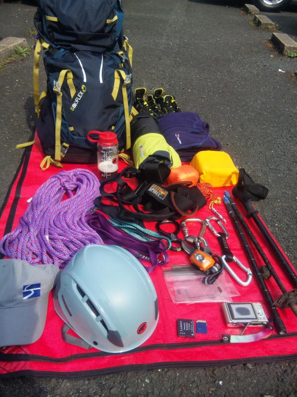 今回は単独行でしたので、滝でロープなどは使っていませんが、