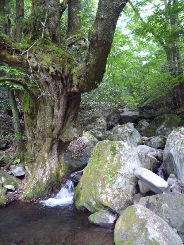- 犬ヶ岳駐車場/登山口(15分)入渓口(50分)大木(10分)恐淵ゴルジュ入口(30分)夫婦滝(10分)木橋(登山道を下山40分)犬ヶ岳駐車場