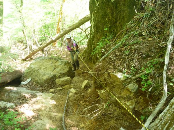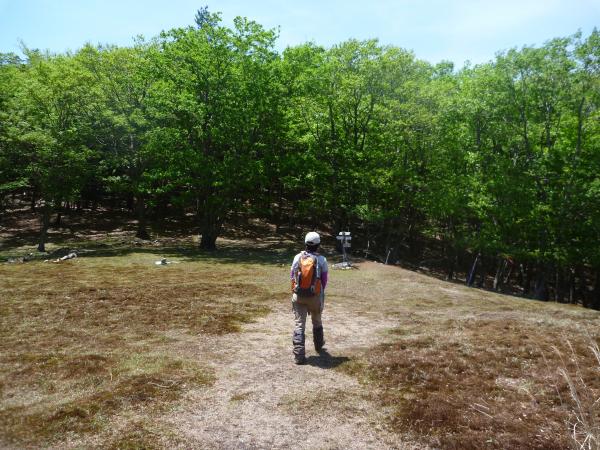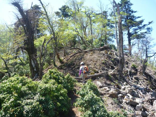 山頂の手前に立入禁止のテープが貼ってあります。一度下ってまた登り返す迂回路があります。