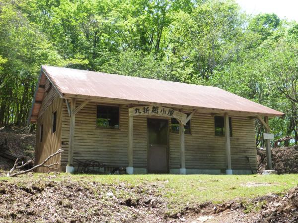 下山は九折越(つづらごし)経由です。最初は斜度がありますが、だんだん緩やかになり広場に出たところが分岐です。50m登るとつづら越小屋があり、宿泊できます。トイレ崩壊。