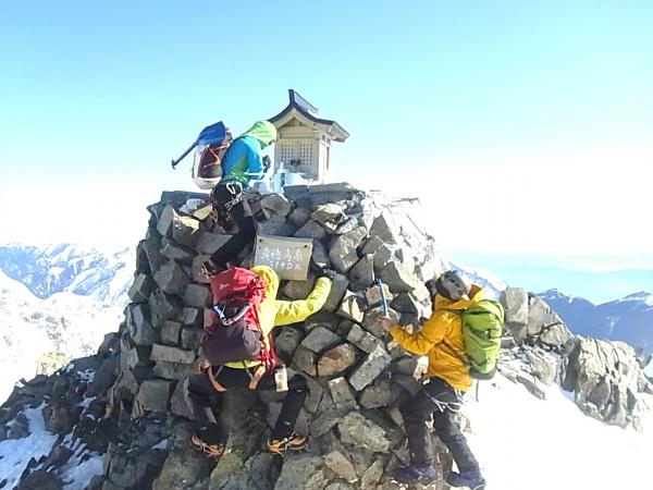 行者小屋からはピッケル・アイゼン必須。