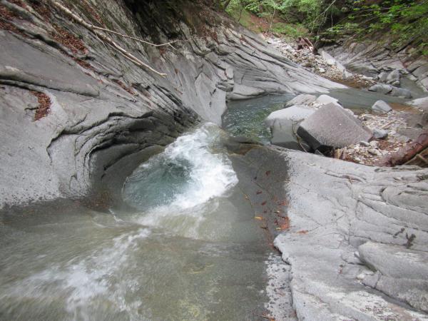 渓谷美で知られる西沢渓谷を二俣で分け、乙女滝や東のナメ滝などの名瀑を眺めつつ、魚留ノ滝を越え、釜ノ沢の白眉である「千畳ノナメ」を辿り、さらに両門ノ滝を越えていくこのルートは、様々な美しい渓相に出合える珠玉のコースです。