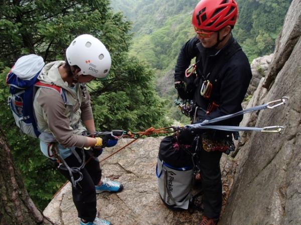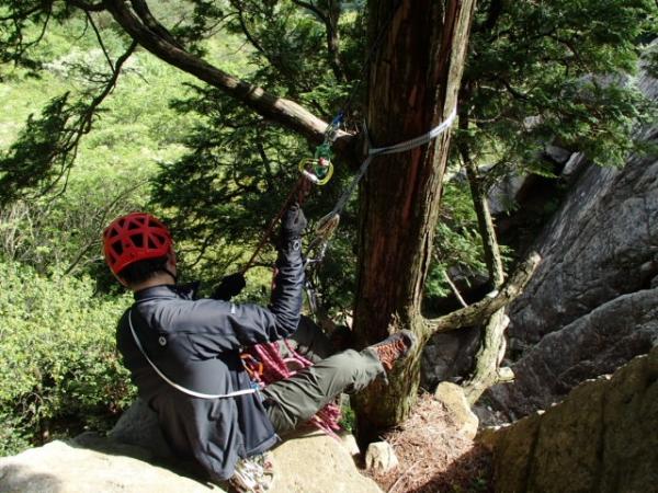 懸垂下降や支点構築、ナチュラルプロテクションのセットなど、継続的トレーニングあるのみです。