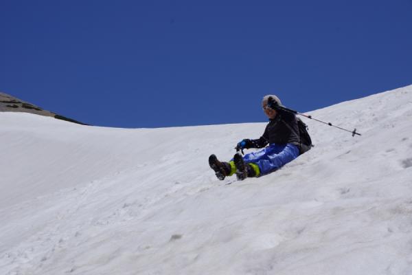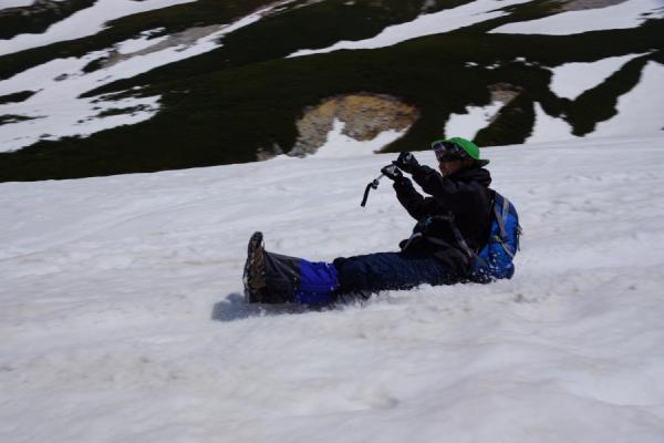 みんなして雨具のズボンをはいてシリセードで滑り降ります。子供みたいにはしゃいで楽しかった~