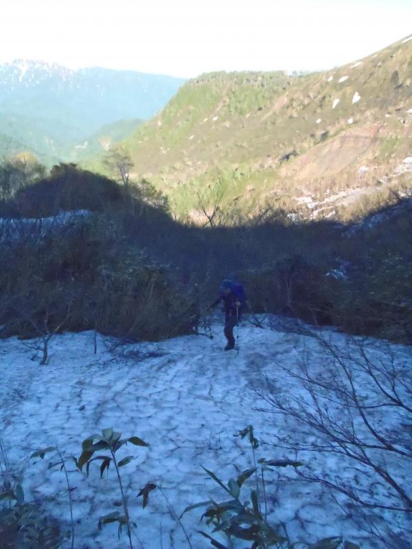 スキーかツボ足か迷った挙句、今回はツボ足に。やはりスキーには賞味期限切れ寸前というところ。
