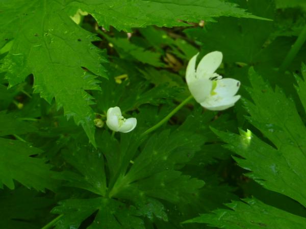 ブナやカツラ。アカガシなどの巨木が林立する明るい林の足元に