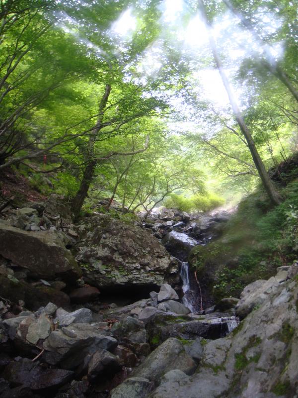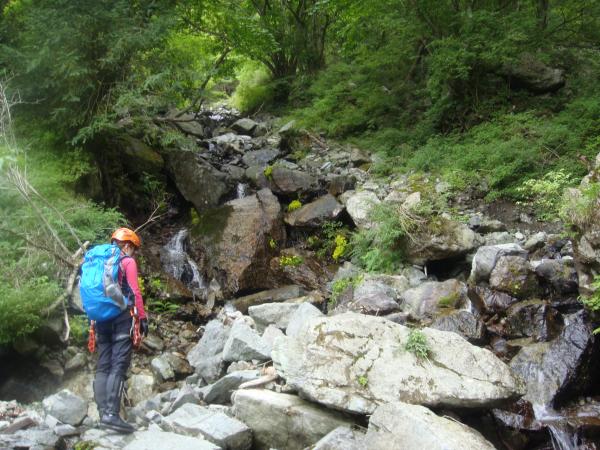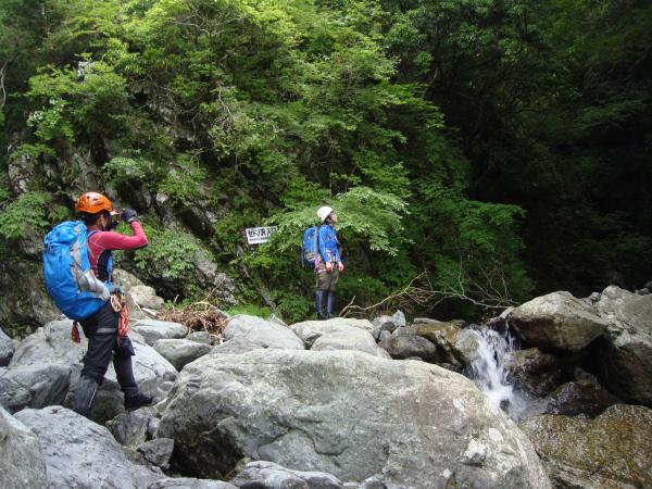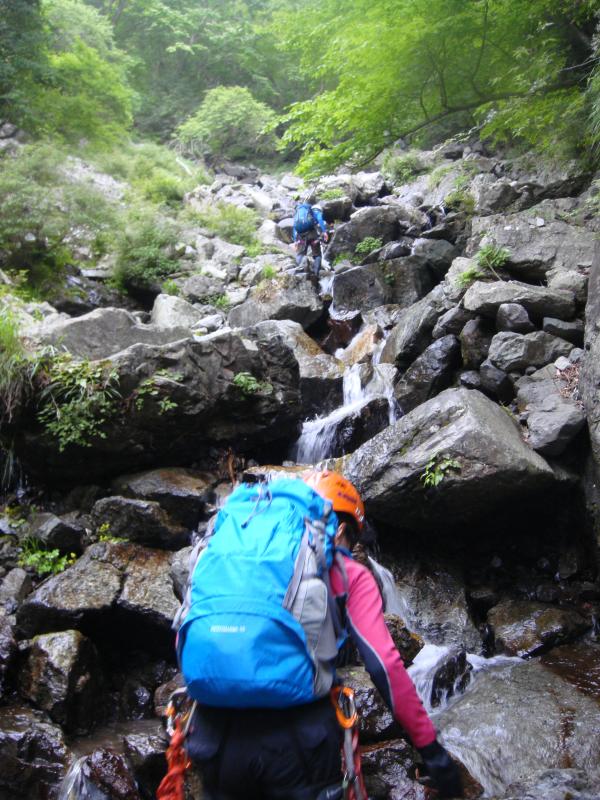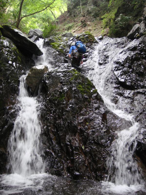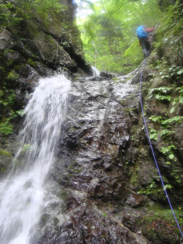 - ほぼ遡行図通り。2つの10m滝には残置支点あり。左沢出合を横切る書策新道は明瞭で、そのまま表尾根に上がることができる。