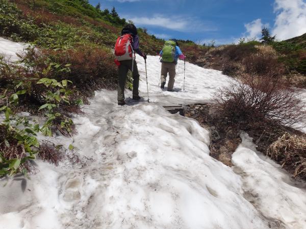 火山のため岩が露出していたり所々残雪はありますが、整備されているので歩きやすいです。