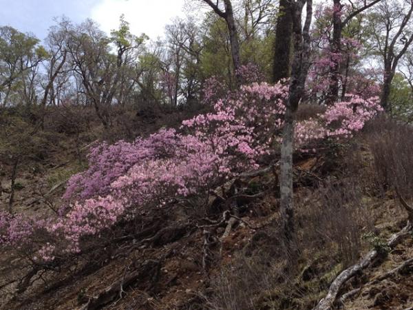 - お化粧山まで登り続き山シャクヤク、ミツバツツジを見ながらゆっくりと登り、一気に高度を稼ぐ。