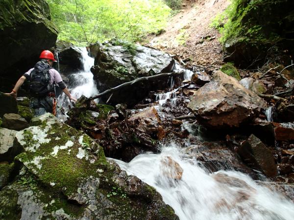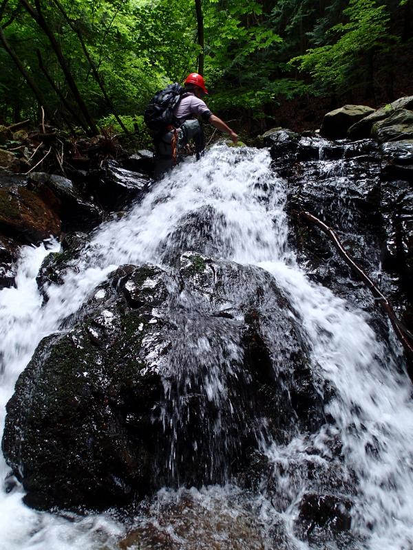 - 道証地蔵(30分)→スミ沢二股(100分)→大滝2段12m(30分)→スラブ滝(60分)→道証地蔵