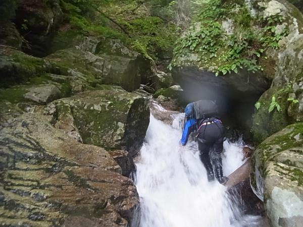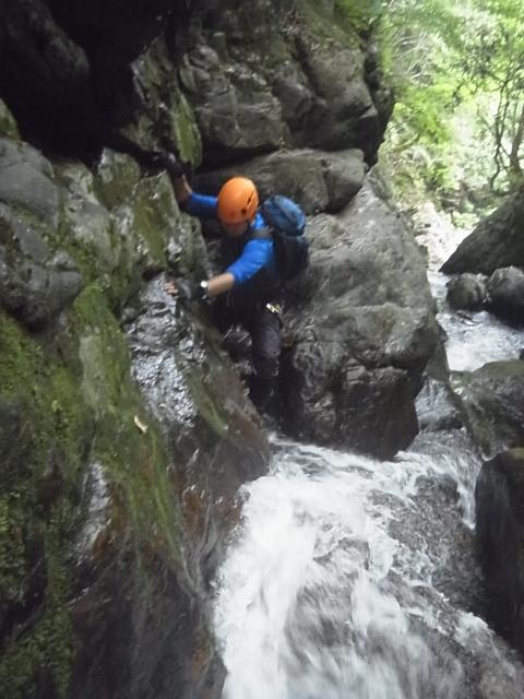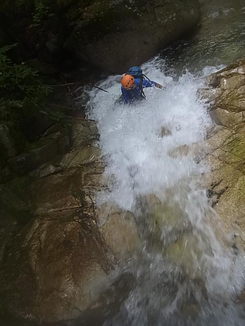 中間地点からは高度感のある滝がいくつかでてきて、沢登りの醍醐味が味わえます。