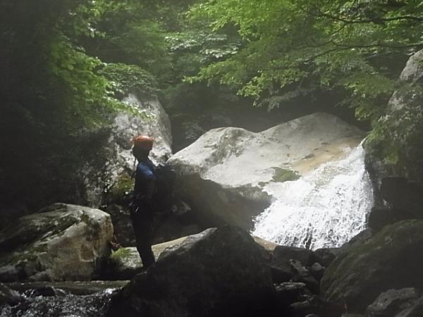 - 水量はやや多めで中間にある15m滝は左をまきました。