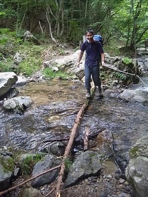 JR堅田駅からバスで坊村に行き、林道を約1時間歩くと、入渓点に着きます。