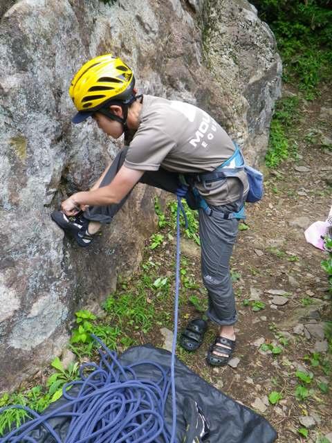 今にして思うと、かなり初心者向きのルートばかりで初めての岩場練習には最適。