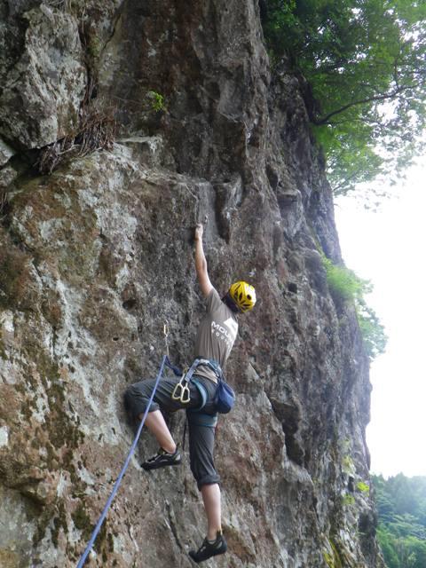倉ヶ岳のルートのほとんどは核心が短く、上部は階段状のスラブになっていて実質下部の数メートルだけをこなすような感じです。まだクライミングに慣れていない方、初めて外に登りに行く方、お勧めです!ロワーダウンは結び替えを行わないとダメなのでそれは練習してから行きましょう。