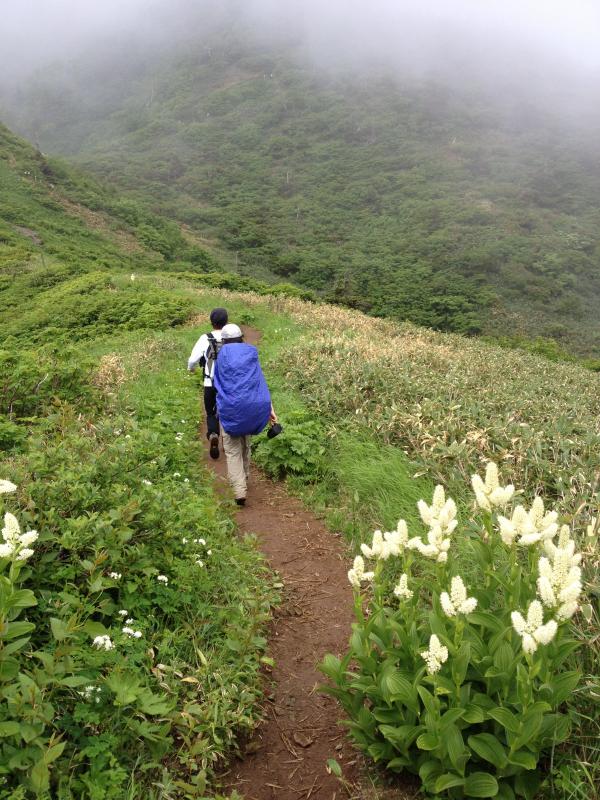 出発時は晴れていましたが、頂上周辺はガスの中…。時折大粒の雨が降ってきたりと変わりやすいお天気でした。