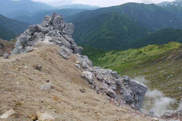 焼岳展望台から焼岳山頂までは石ザレ、火山ガスに注意。