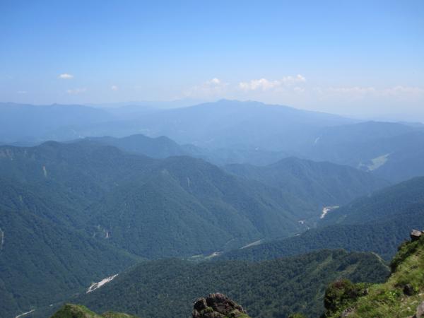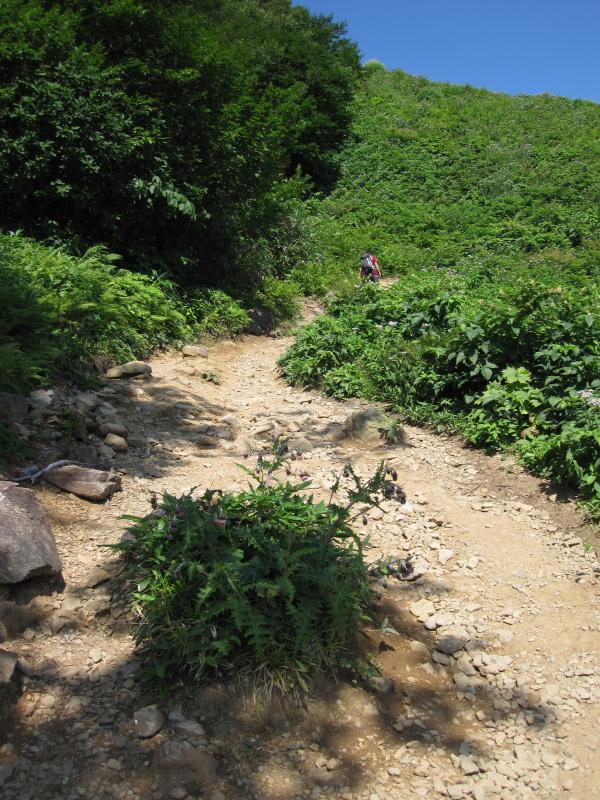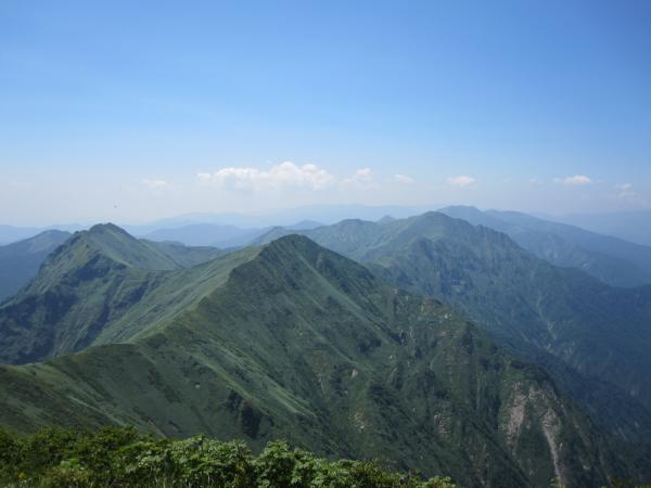 天気も見事な快晴。というより猛暑日。山頂でお弁当を食べたのですが、はいていた黒色のタイツに猛烈な太陽光を浴びて、焦げて穴が開くんじゃないかと思いました。温度計も36℃を示していました。稜線に出ると少し風はありましたが、なかなかアツい一日でした。