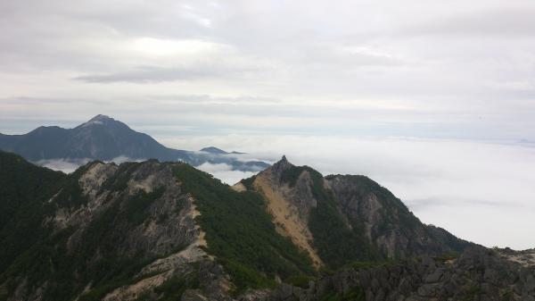 午前4:30に出発。前日夜に降り出した雨も止み幸先良い出発でした。南御室から多少樹林帯が続き、暗いですがヘッドランプがあれば道は分かりやすいです。そして雲海も見れて薬師岳から地蔵岳の稜線での景色は感無量でした。地蔵岳のオベリスクに登っている方は数名いらっしゃいましたが、割と険しいので