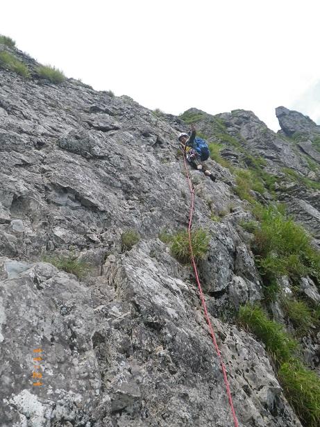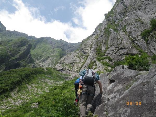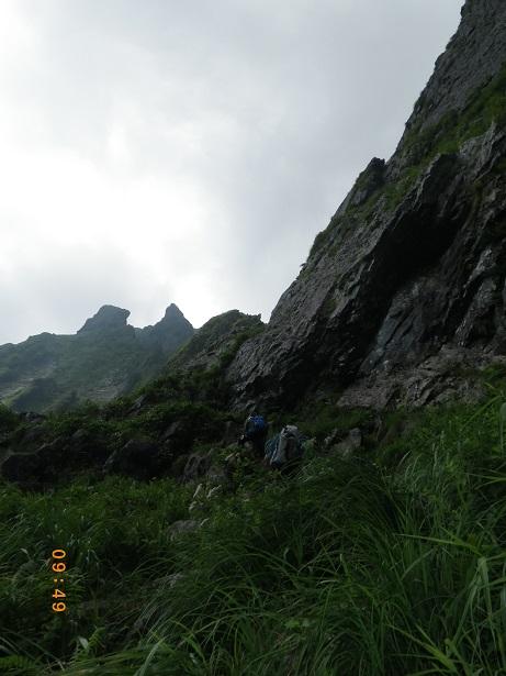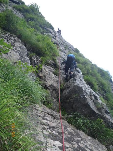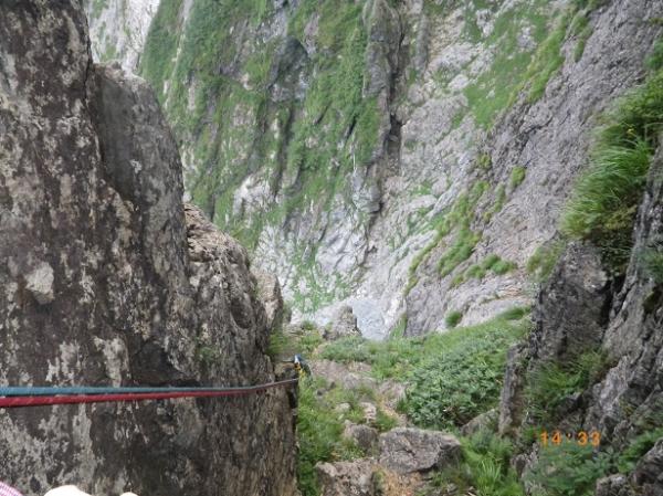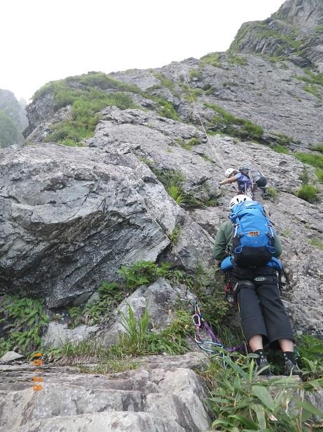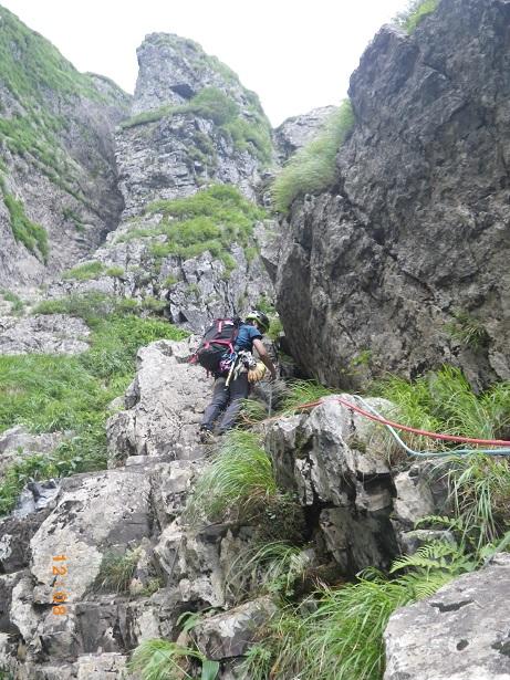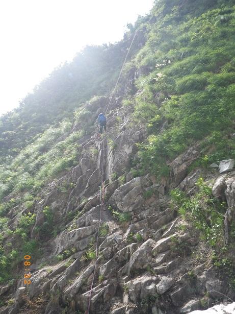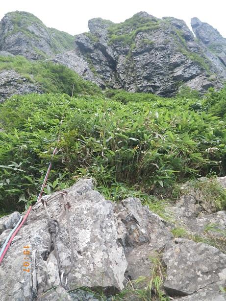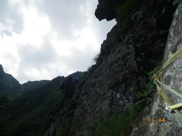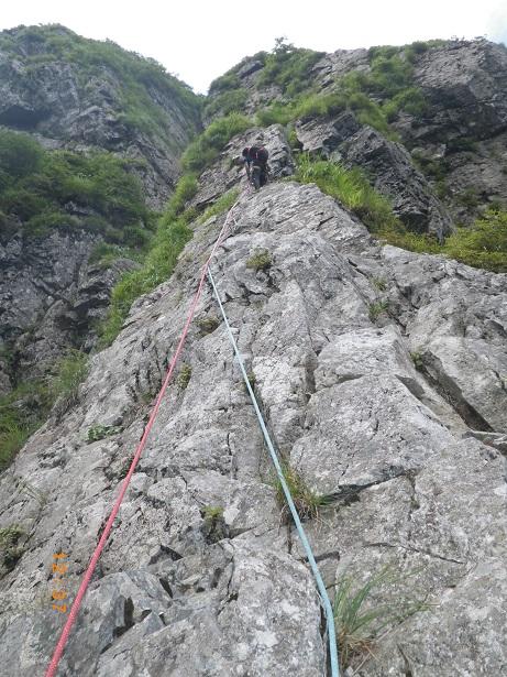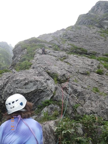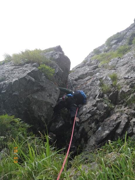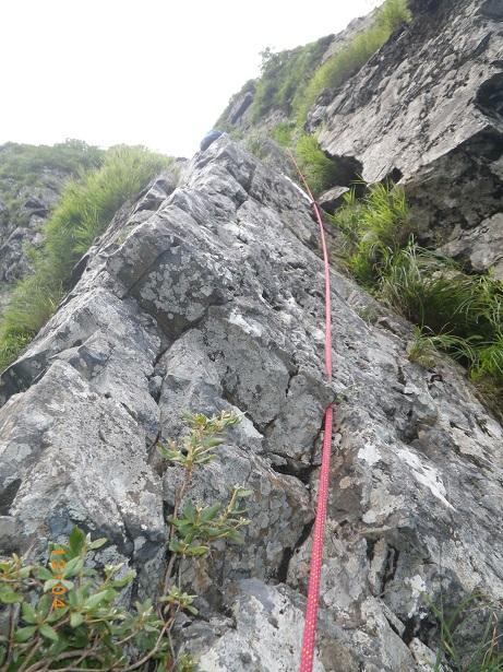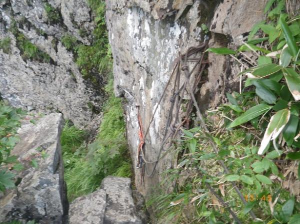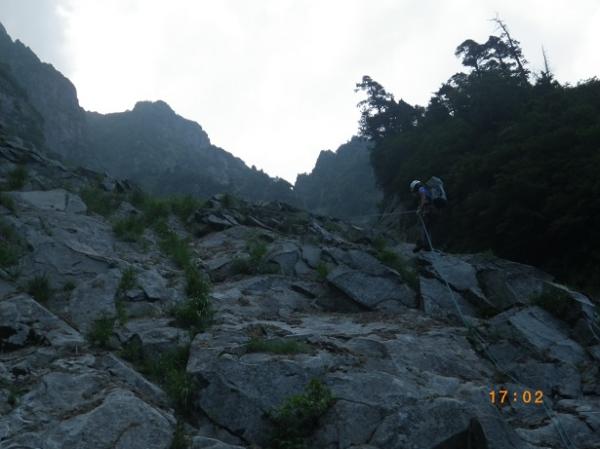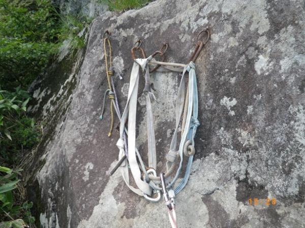 前からのフィックス、残っている。6ルンゼ、下降支点はペツル。そこで切れば、いっぱいで5回で取りつきに。3回6ルンゼ降りたら、南陵がわに回り込むこと。