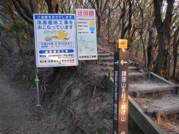 鉄拐山から東へ行くルートは9/30まで工事の為通行止めのようです。(全山縦走路は問題ありません)