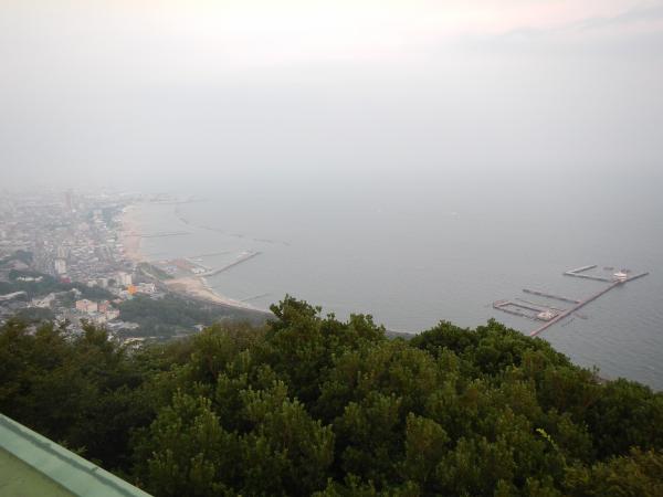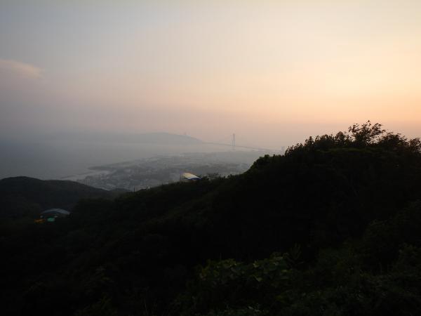 旗振山で夕陽待ちをし須磨浦公園へ下山。もっとキレイな夕焼け空が見られるかと期待していましたがこの日は靄が邪魔して残念でした。