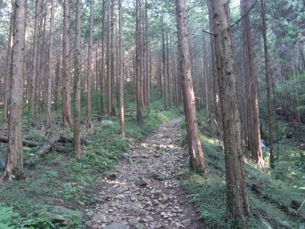 登山口の駐車場は、4台ほどは停められるでしょうか。連日の夕立で、一部登山道が沢となって滑りやすかったです。
