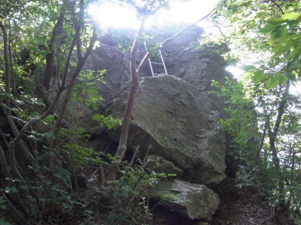 鞍掛山神社の滝も、増水しているのか中々立派に見えました。神社より先は急登が奥の院まで続きます。奥の院まで来てしまえば、あとは樹林帯の稜線歩き。早朝のため涼しく歩けました。山頂を過ぎ、5分ほどで大岩が現れます。梯子を越えると、180度近いパノラマです。充分に展望を楽しんだら、後は下るのみ。ゆっくり下っても40分程で駐車場に戻れます。