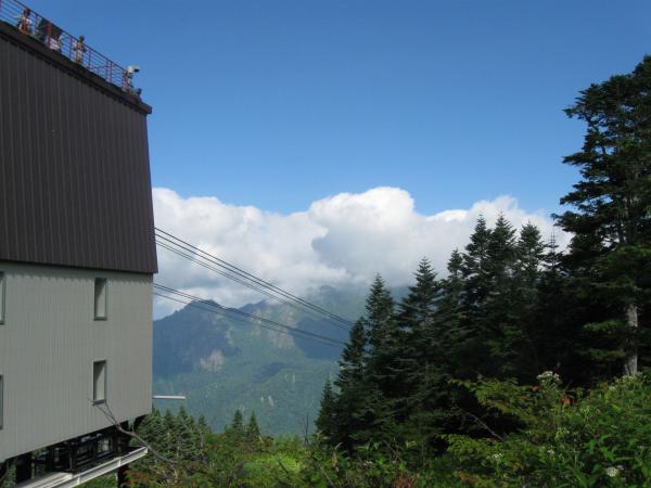 山頂からの景色は雲が多くてすっきりとはしませんでしたが、雲の切れ間から
