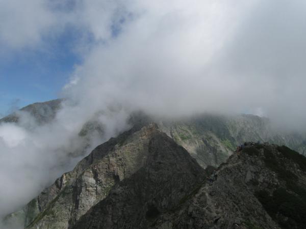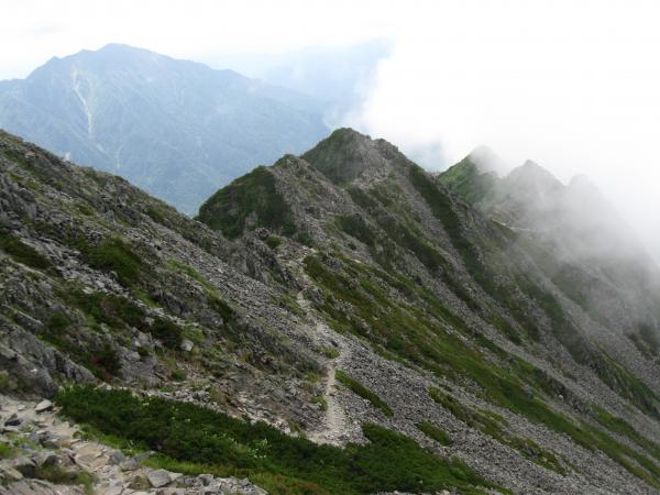 時折見える奥穂高岳への縦走路は雰囲気がありました。