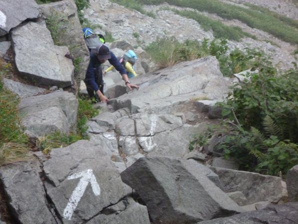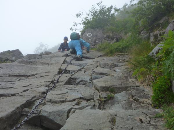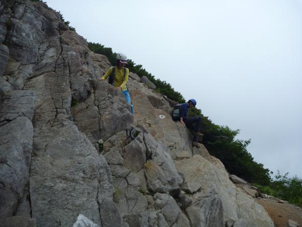 当日は雨で足元が非常に滑り易くなっており、テント泊の装備で重量が重いので、ゆっくりしたペースでの