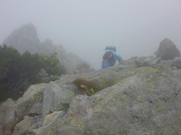 当日は、霧と雨により北穂高岳~奥穂高岳への縦走登山は、安全を考えて中止を決断して涸沢~北穂高岳のピストンとなりました。