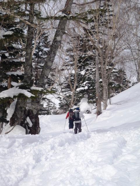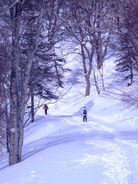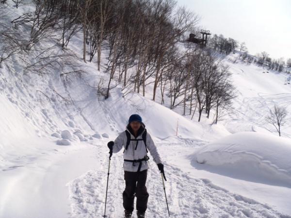 途中から一緒になった2人の外人スキーヤーが、私のヨロヨロのキックターンを見て、