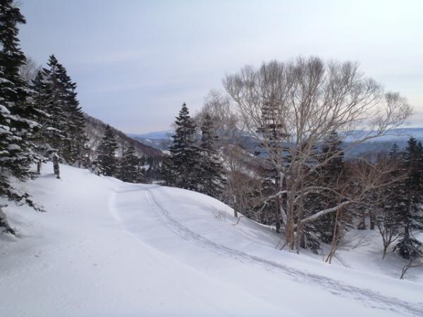 - 前日からの降雪でふかふかのパウダー。