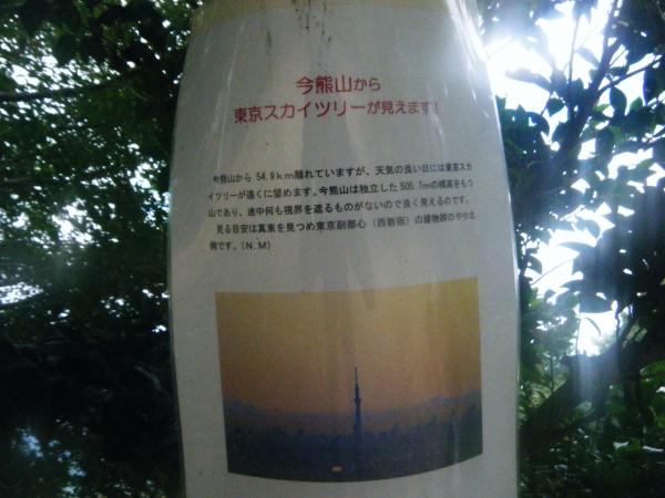 また、今熊山からは東京スカイツリーの夜景が見えるので、ナイトハイクも面白いかもしれません。
