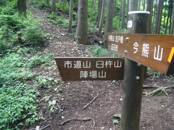 - 武蔵五日市駅⇒(30~40分)今熊バス停⇒(50分)今熊山⇒(70分)入山峠⇒(140分)市道山分岐⇒(5分)市道山⇒(70分)笹平バス停