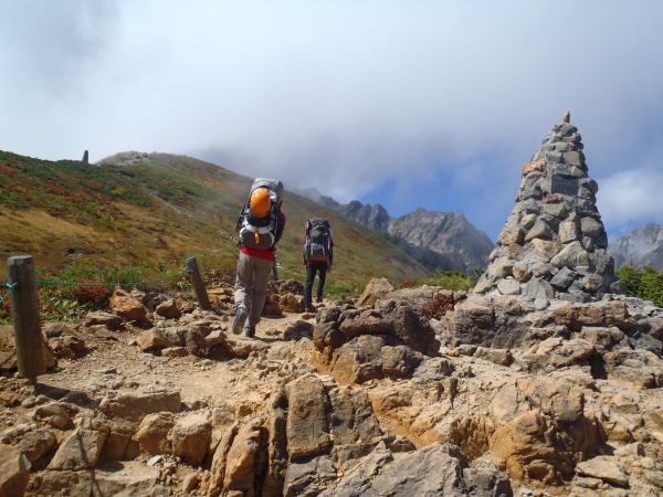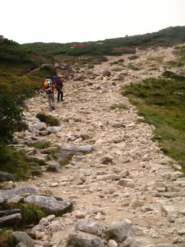 クサリ場、浮石の多いガレ場が続くのでスリップ注意。