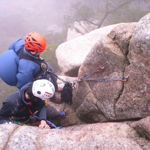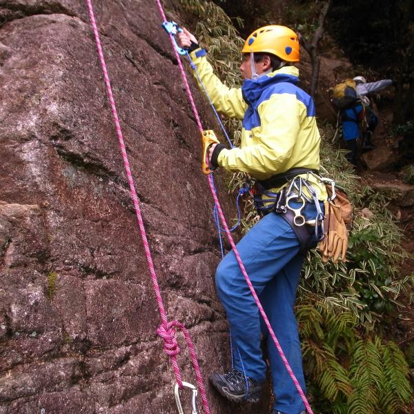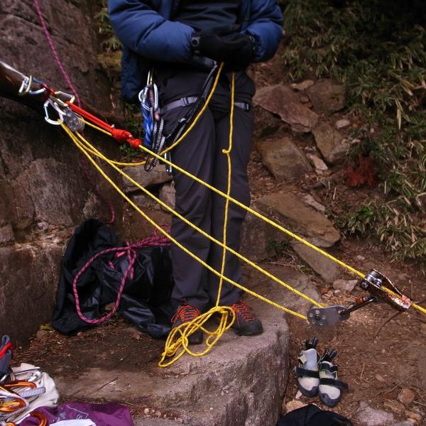 たくさんある道具の違いを教えてもらいながら、普段使ったことのない道具も使用し、悪戦苦闘しながら登りました。