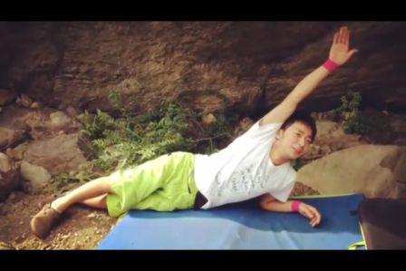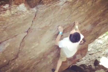 とっつきやすい課題、マントル時にひっくり返ると、後ろの岩が近いのでスポット要。