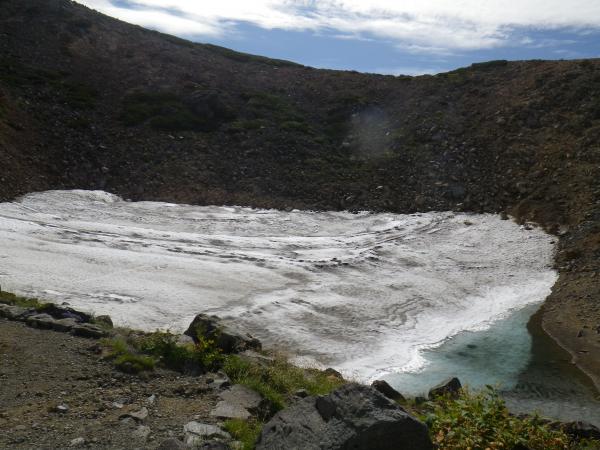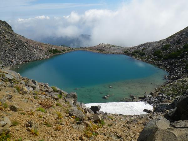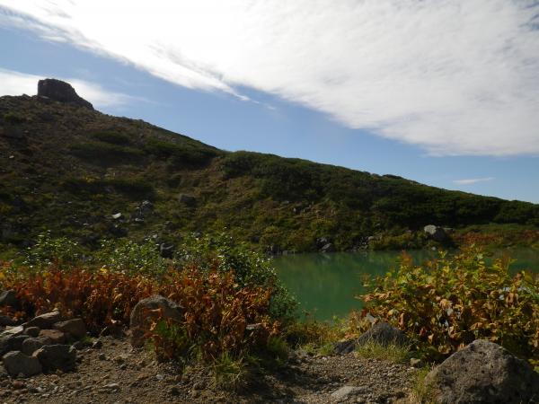 - 池へ向かう道は、ガスがかかるとペンキマークが見えにくく、足元注意です。