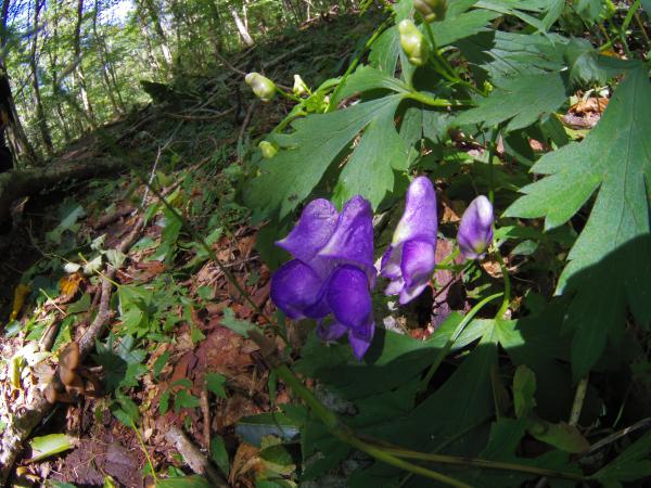 アザミやミヤマヨメナなどの秋の花が揺れるあしもとには