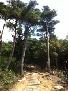 大阪府豊能郡能勢町の行者山(460m)、剣尾山(784m)、横尾山(785m)の稜線周回コースを歩いてきました。剣尾山・行者山・横尾山の周回コースは、稜線からの展望が良く、史跡もあって人気のコースです。登山口に入ると杉林の中の階段道。