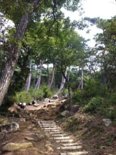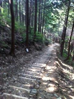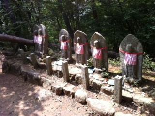 そこから剣尾山へ続く道に繋がります。整備された道ですが、時折急な階段が現れ体力を奪われます。さらに坂道を登って行くと、六地蔵に到着。