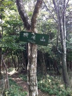 尾根に踏み固められたルートが続いているのでそれに従う。その先が横尾山のピークで、「横尾山(784.9m)」の山名表示が小木に掛けられていました。