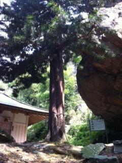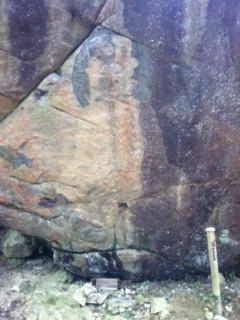 その階段を10分ほど登り続けると、前方に大きな岩があり、それは「大日岩」で、岩面に大日如来坐像が彫られている。