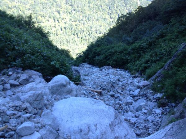 1ルンゼの押し出しは、岩小屋跡からの踏み跡があるので迷うことはないと思います。