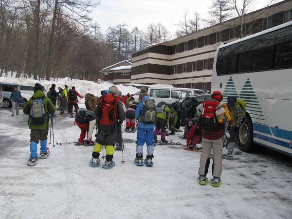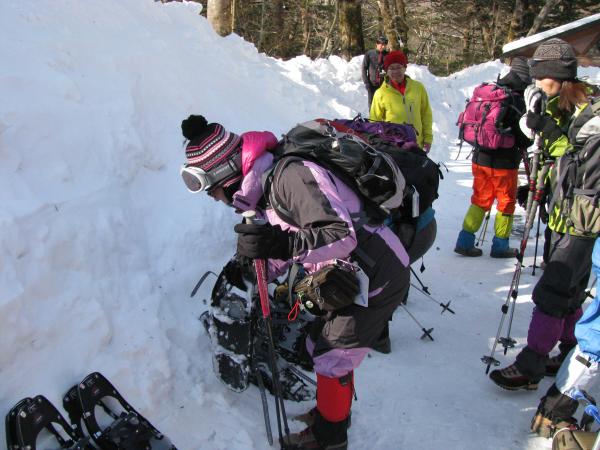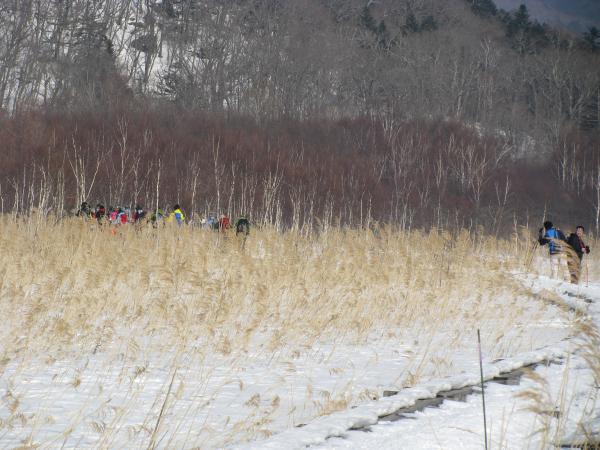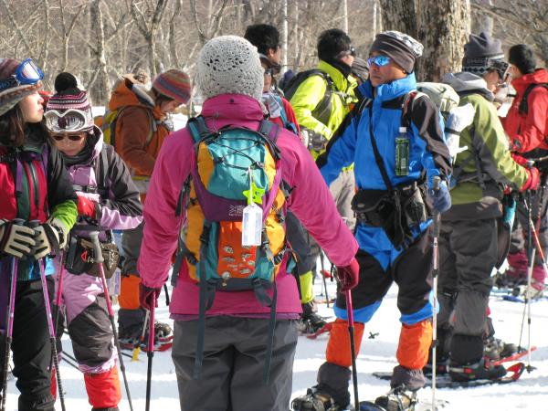 つくば店・宇都宮店合同山行ツアー(登山学校)第一弾はチョー有名なスノーシュースポット『日光戦場ヶ原』です。参加者のほとんどはスノーシューで歩くのははじめての方ばかり。でも戦場ヶ原はそんな我々も温かく迎え入れてくれました♪スノーシューを付けるのに手間取っていた方も歩き始めると初めてとは思えない快調な足取りで歩いていました。途中急登で四苦八苦したのもご愛嬌(ということで皆さん笑顔で許してくれました)。アップダウンもほとんど無く安全快適なスノーシューイングでした。