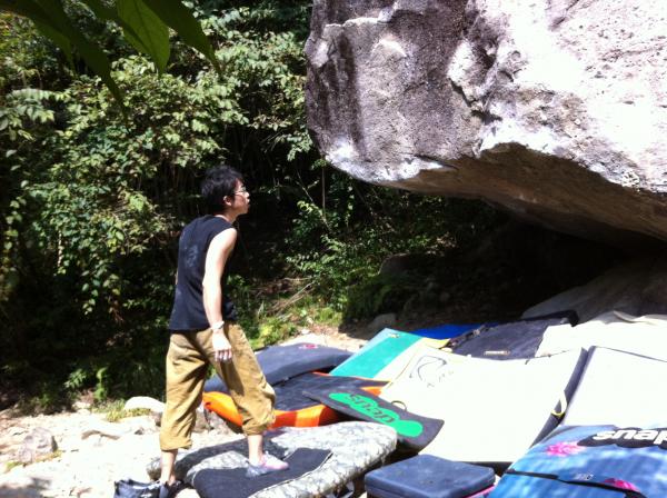 直射日光の当たる岩はぬくく、フリクションがあるとは言い難かったです。